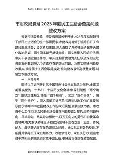 市财政局党组2025年度民主生活会查摆问题整改方案.docx