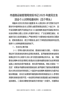 市道路运输管理局党组书记2025年度民主生活会个人对照检查材料(五个带头).docx