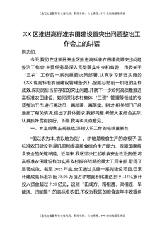 XX区推进高标准农田建设暨突出问题整治工作会上的讲话.docx