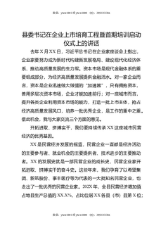 县委书记在企业上市培育工程暨首期培训启动仪式上的讲话.doc