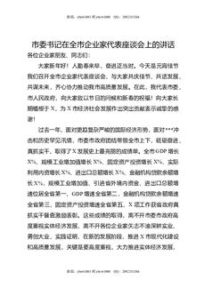 市委书记在全市企业家代表座谈会上的讲话.docx