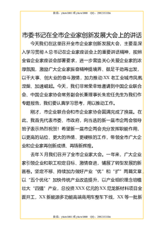 市委书记在全市“企业家日”暨全市产业转型升级发展大会上的讲话.doc