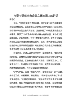 市委书记在全市企业文化论坛上的讲话.docx