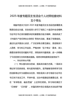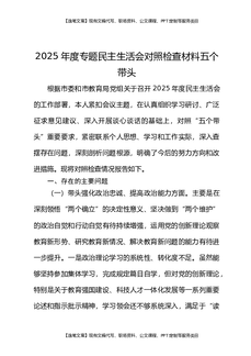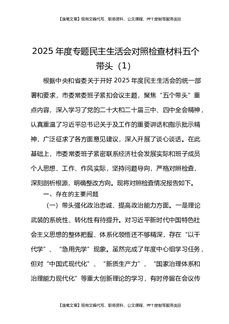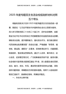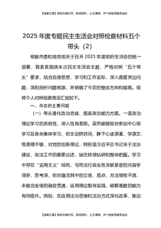2025年度专题民主生活会检视剖析材料对照五个带头.docx