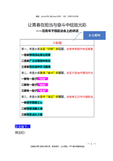 2025.10.20(写作模板)(在青年干部座谈会上的讲话)让青春在担当与奋斗中绽放光彩