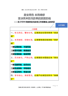 2026.3.5(写作模板)(在春季防汛防旱工作部署会上的讲话)居安思危 未雨绸缪 坚决筑牢防汛防旱的坚固防线