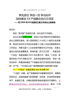 2026.3.11(写作模板)(在2026年XX街道党工委工作会议上的报告)争先进位 争创一流 争当标杆 加快建设XX产城融合先行示范区