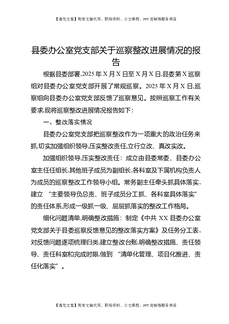 县委办公室党支部关于巡察整改进展情况的报告.docx