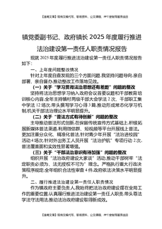 镇党委副书记、政府镇长2025年度履行推进法治建设第一责任人职责情况报告.docx