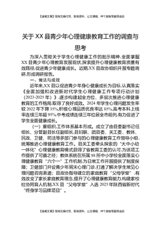 关于XX县青少年心理健康教育工作的调查与思考.docx