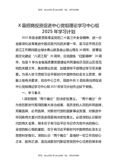 X县招商投资促进中心党组理论学习中心组2025年学习计划.docx