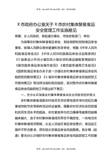 X市政府办公室关于X市农村集体聚餐食品安全管理工作实施意见.docx