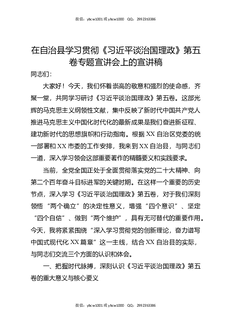 在自治县学习贯彻《总书记谈治国理政》第五卷专题宣讲会上的宣讲稿.docx