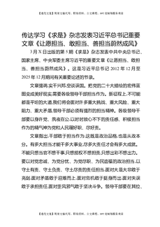 传达学习《求是》杂志发表总书记重要文章《让愿担当、敢担当、善担当蔚然成风》.docx