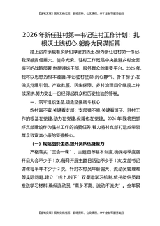 2026年新任驻村第一书记驻村工作计划:扎根沃土践初心,躬身为民谋新篇.docx
