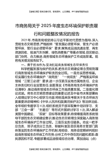市商务局关于2025年度生态环境保护职责履行和问题整改情况的报告.docx