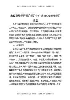 市教育局党组理论学习中心组2026年度学习计划.docx