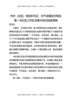 市村(社区)党组织书记、村干部暨驻村帮扶第一书记及工作队员集中培训班授课稿.docx