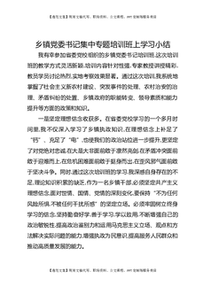 乡镇党委书记集中专题培训班上学习小结.docx