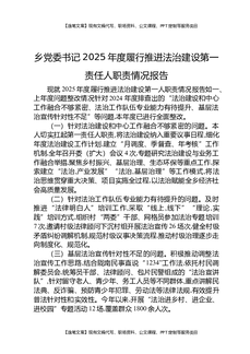 乡党委书记2025年度履行推进法治建设第一责任人职责情况报告.docx