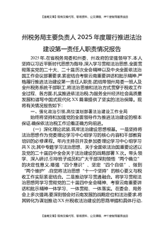 州税务局主要负责人2025年度履行推进法治建设第一责任人职责情况报告.docx