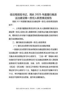 信访局党组书记、局长2025年度履行推进法治建设第一责任人职责情况报告.docx
