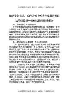 镇党委副书记、政府镇长,2025年度履行推进法治建设第一责任人职责情况报告.docx