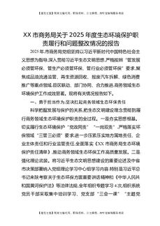 XX市商务局关于2025年度生态环境保护职责履行和问题整改情况的报告.docx