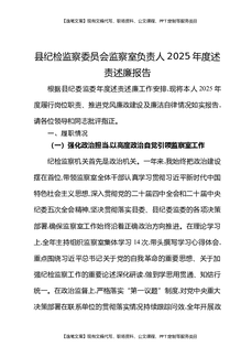 县纪检监察委员会监察室负责人2025年度述责述廉报告.docx
