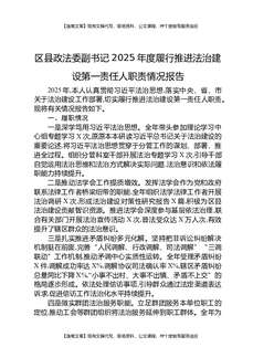 区县政法委副书记2025年度履行推进法治建设第一责任人职责情况报告.docx