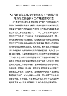 XX市直机关工委总支贯彻落实《中国共产思想政治工作条例》工作开展情况报告.docx