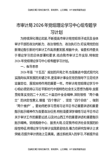 市审计局2026年党组理论学习中心组专题学习计划.docx