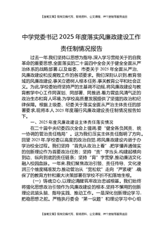 中学党委书记2025年度落实党风廉政建设工作责任制情况报告.docx