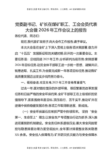 党委副书记、矿长在煤矿职工、工会会员代表大会暨2026年工作会议上的报告.docx