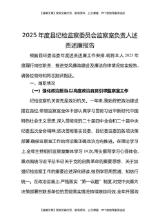 2025年度县纪检监察委员会监察室负责人述责述廉报告.docx
