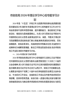 市财政局2026年理论学习中心组专题学习计划.docx