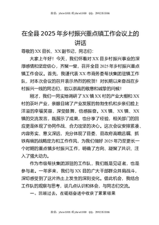 在全县2025年乡村振兴重点镇工作会议上的讲话.docx