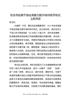 在全市巡察干部业务能力提升培训班开班式上的讲话.docx