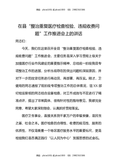 在县“整治重复医疗检查检验、违规收费问题”工作推进会上的讲话.docx