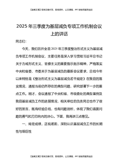 2025年三季度为基层减负专项工作机制会议上的讲话.docx