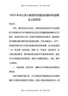 2025年中心深入推进作风建设自查评估部署会上的讲话.docx