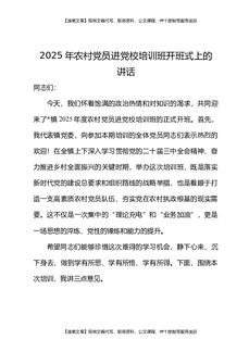 2025年农村党员进党校培训班开班式上的讲话.docx