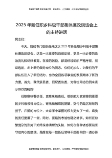 2025年新任职乡科级干部集体廉政谈话会上的主持讲话.docx