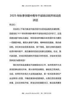2025年秋季学期中青年干部培训班开班动员讲话.docx