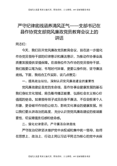 严守纪律底线涵养清风正气——支部书记在县作协党支部党风廉政党员教育会议上的讲话.docx