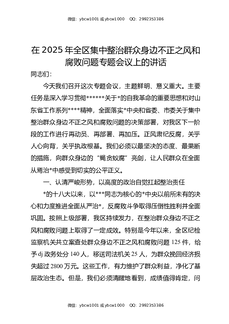 在2025年全区集中整治群众身边不正之风和腐败问题专题会议上的讲话.docx