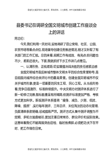 县委书记在调研全国文明城市创建工作座谈会上的讲话.docx