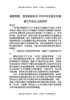 县委常委、宣传部部长在2026年全县卫生健康工作会议上的讲话.docx