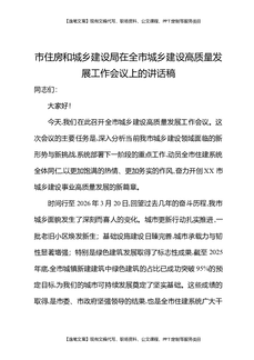 市住房和城乡建设局在全市城乡建设高质量发展工作会议上的讲话稿.docx