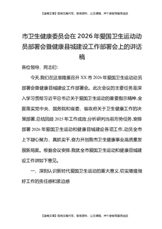 市卫生健康委员会在2026年爱国卫生运动动员部署会暨健康县城建设工作部署会上的讲话稿.docx